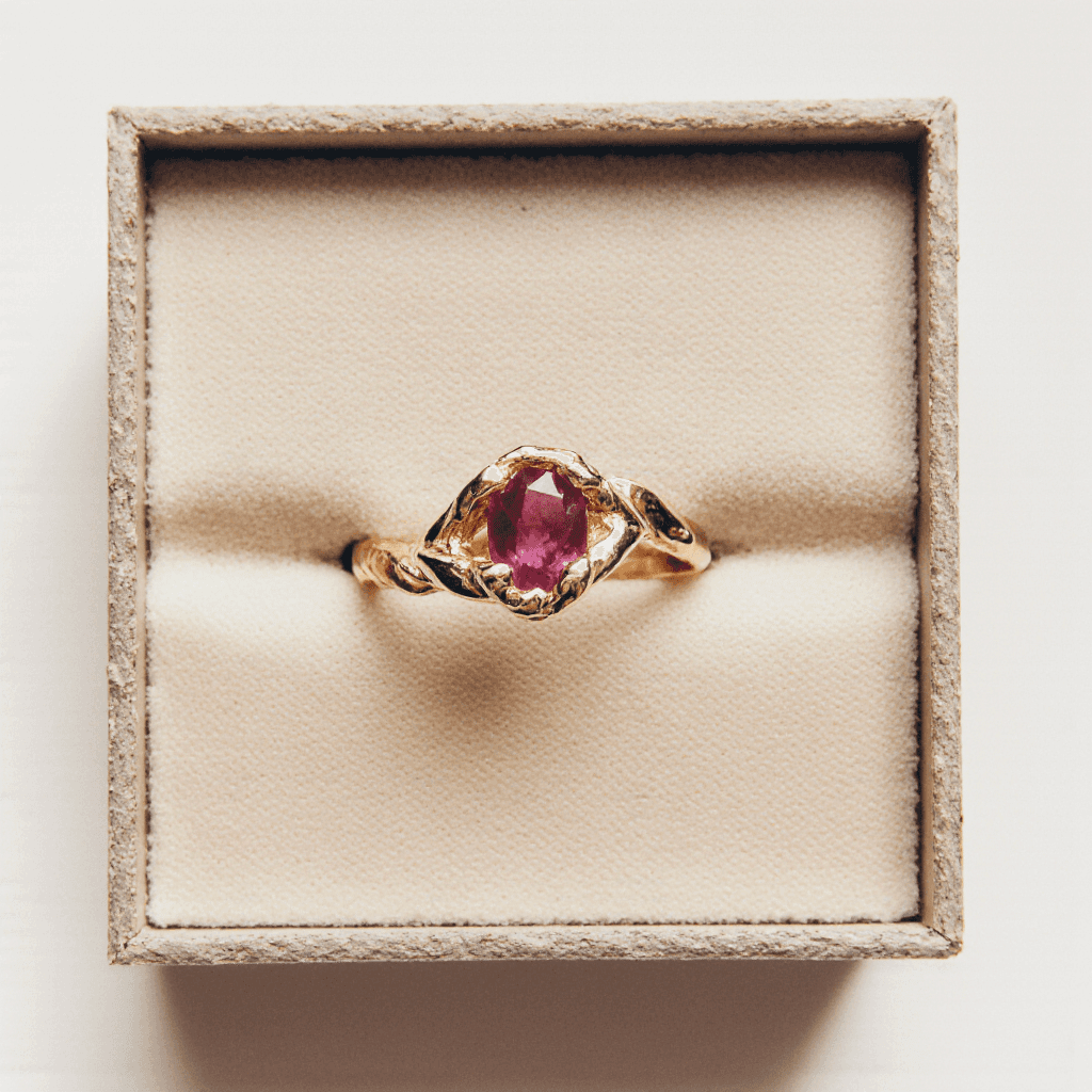 Ada, handcrafted ring in 18k recycled gold with a natural red quartz.