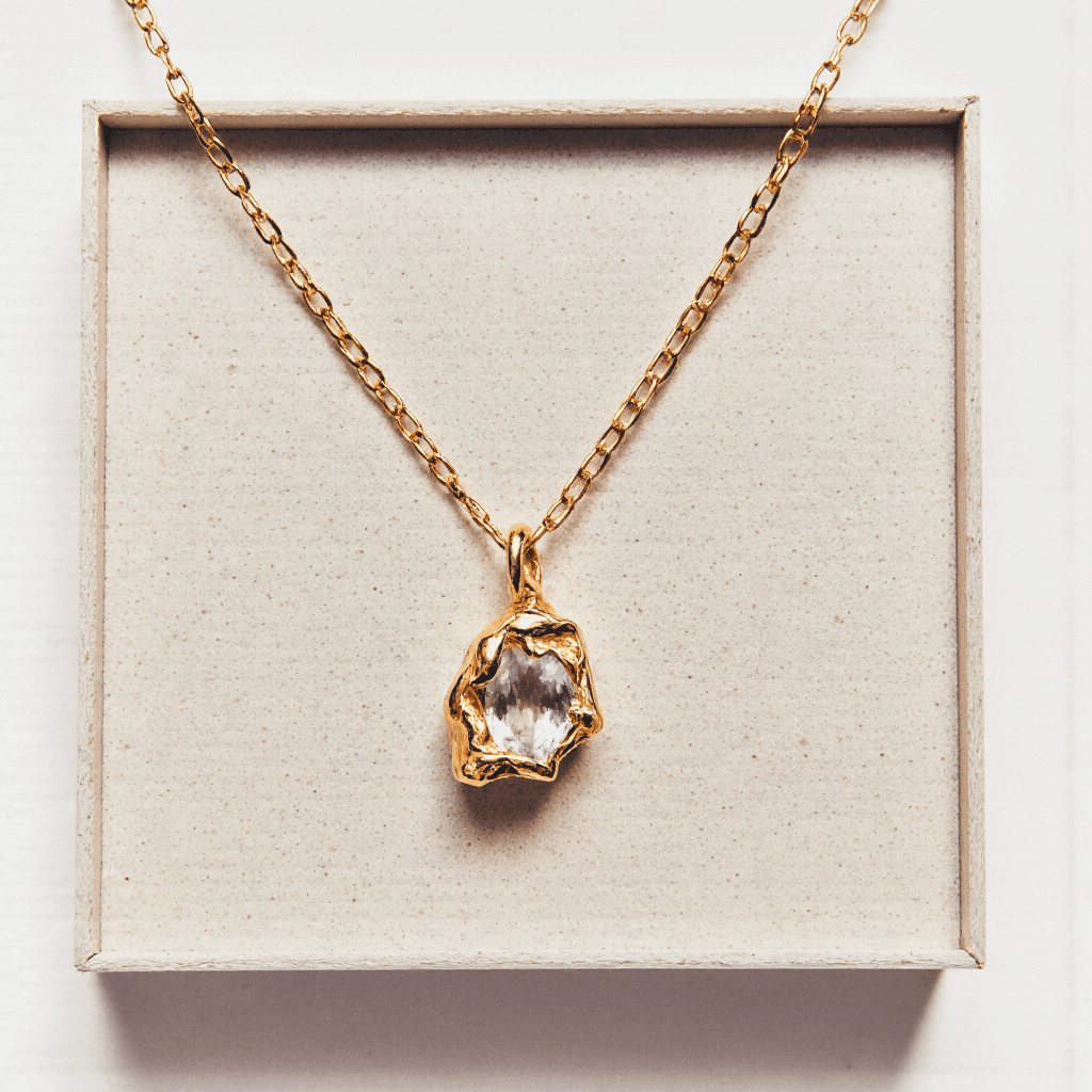 Lyra, a handcrafted gold-plated pendant set with natural moonstone.